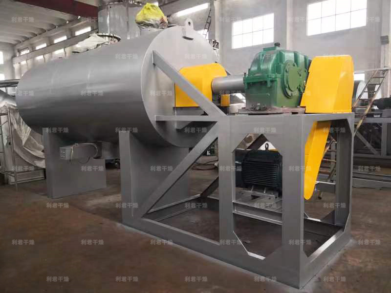 本機(jī)是一種新穎臥式間歇式真空干燥設(shè)備,濕物料經(jīng)傳導(dǎo)蒸發(fā),帶有刮板攪拌器不斷清除熱面上的物料,并在容器內(nèi)推移形成循環(huán)流,水份蒸發(fā)后由真空泵抽出。
