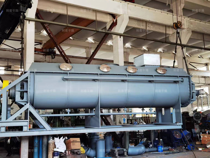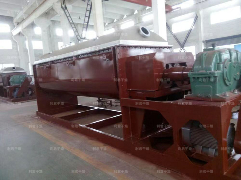空心軸上密集排列著楔型中空漿葉,熱介質(zhì)經(jīng)空心軸流經(jīng)漿葉。單位有效容積內(nèi)傳熱面積很大,熱介質(zhì)溫度從-40℃到320℃,可以是水蒸汽,也可以是液體型:如熱水、導(dǎo)熱油等。間接傳導(dǎo)加熱,沒有攜帶空氣帶走熱量,熱量均用來(lái)加熱物料。熱量損失僅為通過器體保溫層向環(huán)境的散熱。楔型漿葉傳熱面具有自清潔功能。物料顆粒與楔型面的相對(duì)運(yùn)動(dòng)產(chǎn)生洗刷作用,能夠洗刷掉楔型面上附著物料,使運(yùn)轉(zhuǎn)中一直保持著清潔的傳熱面。漿葉干燥機(jī)的殼體為Ω型,殼體內(nèi)一般安排二到四根空心攪拌軸。殼體有密封端蓋與上蓋,防止物料粉塵外泄而充分發(fā)揮作用。